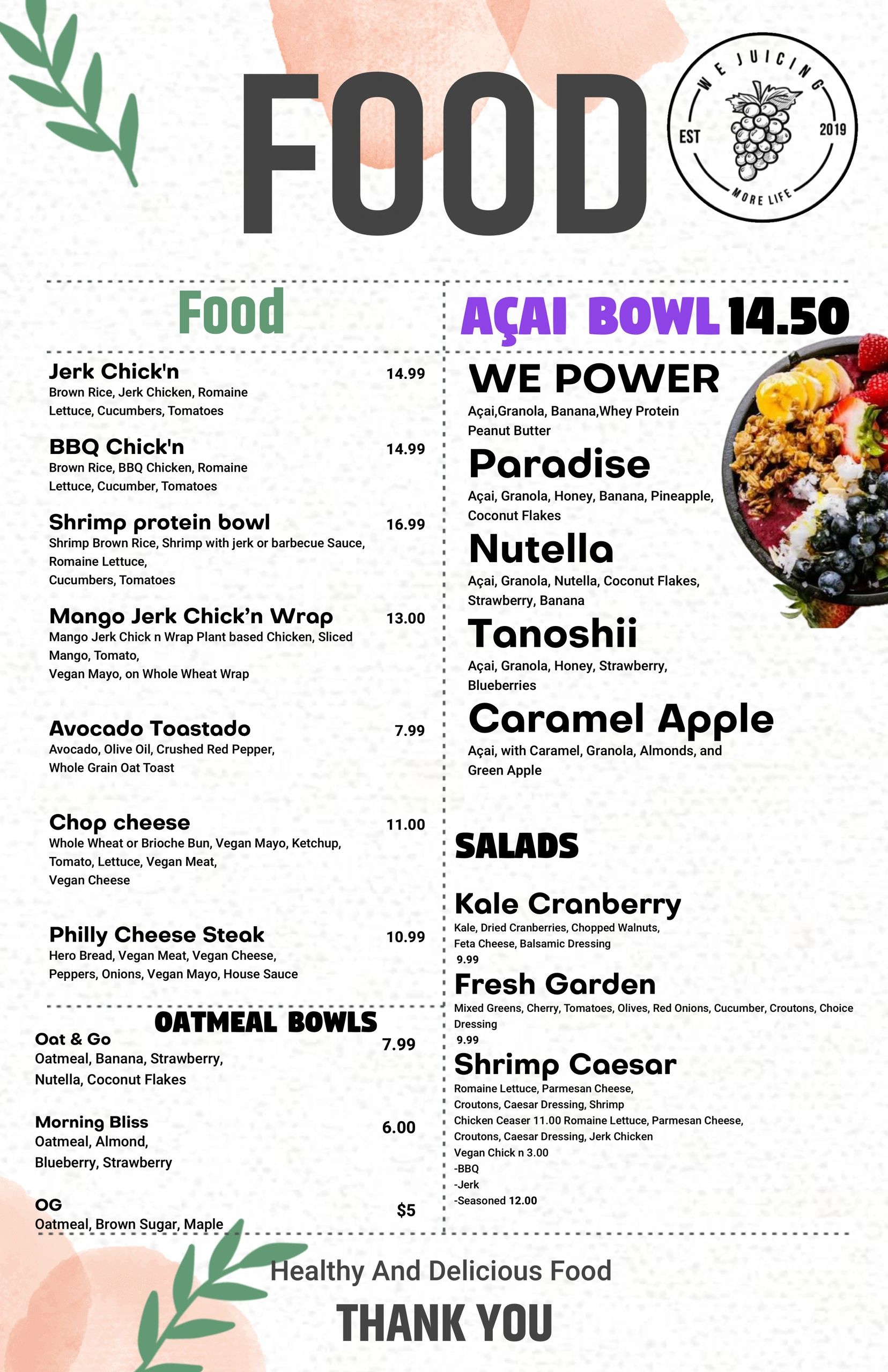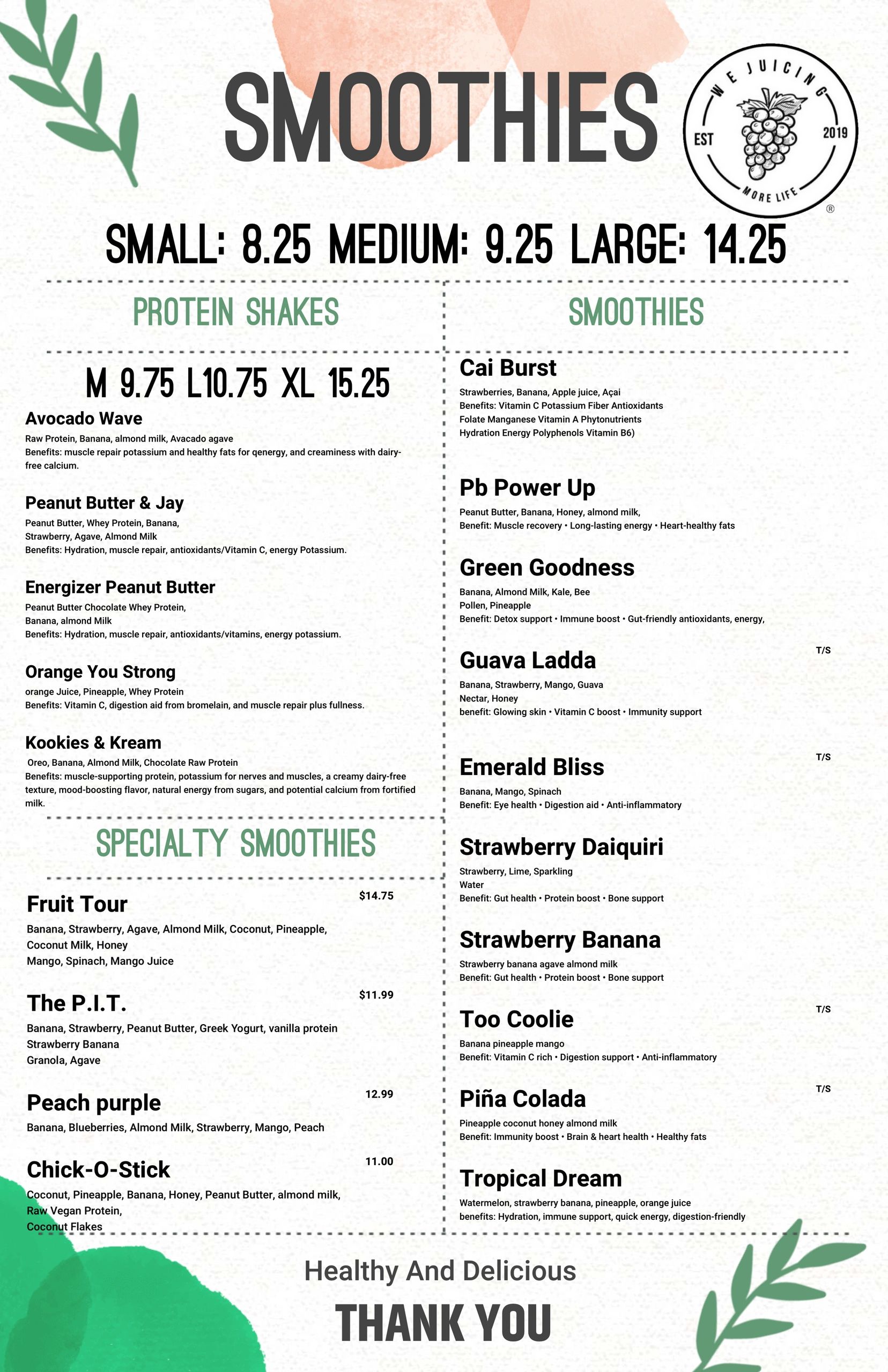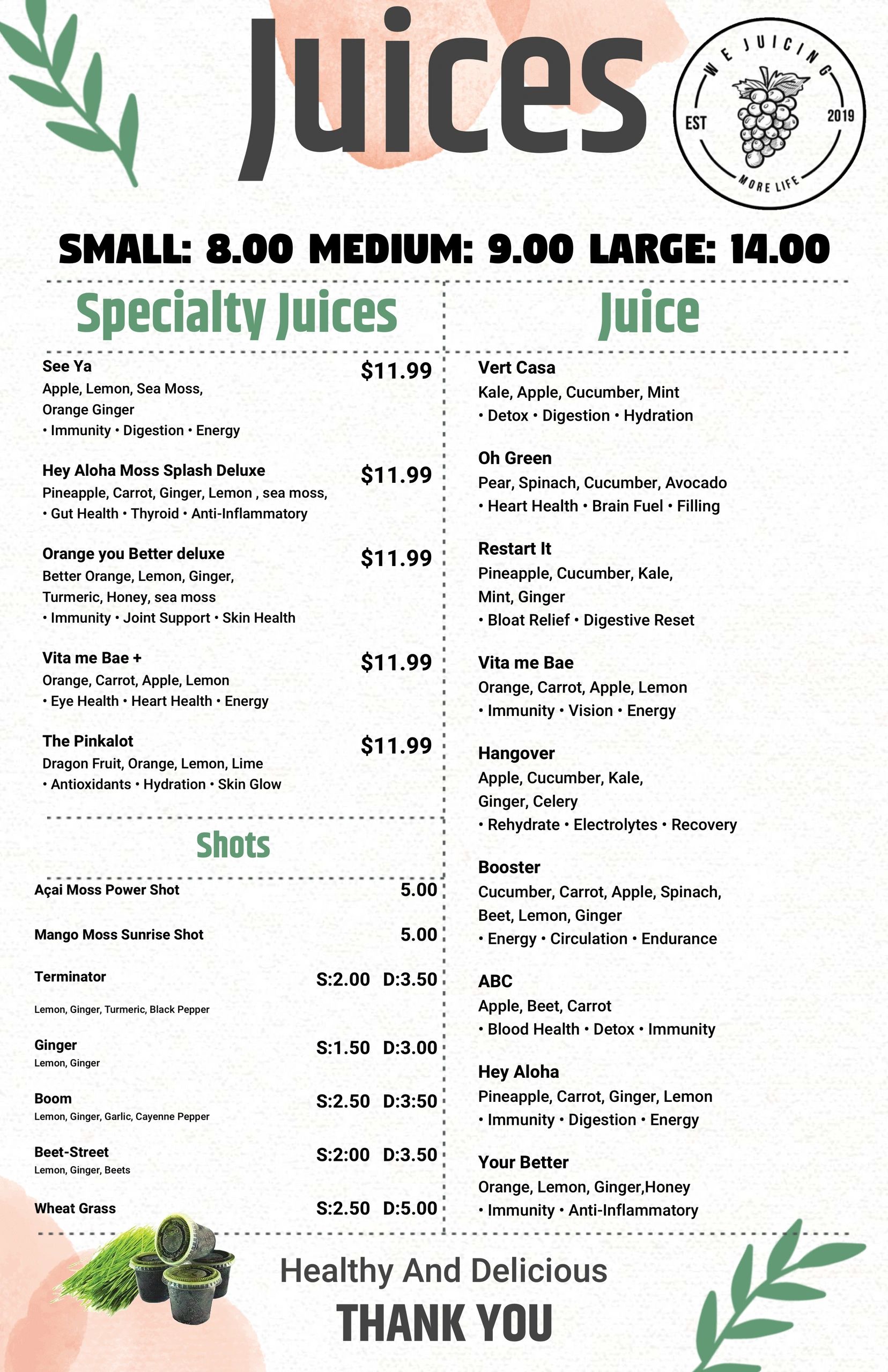 We Juicing is a juice bar known for its delicious smoothies & juice drinks, vegan options, and pescatarian choices. Catering to people of all ages, We Juicing offers a refreshing and healthy experience.